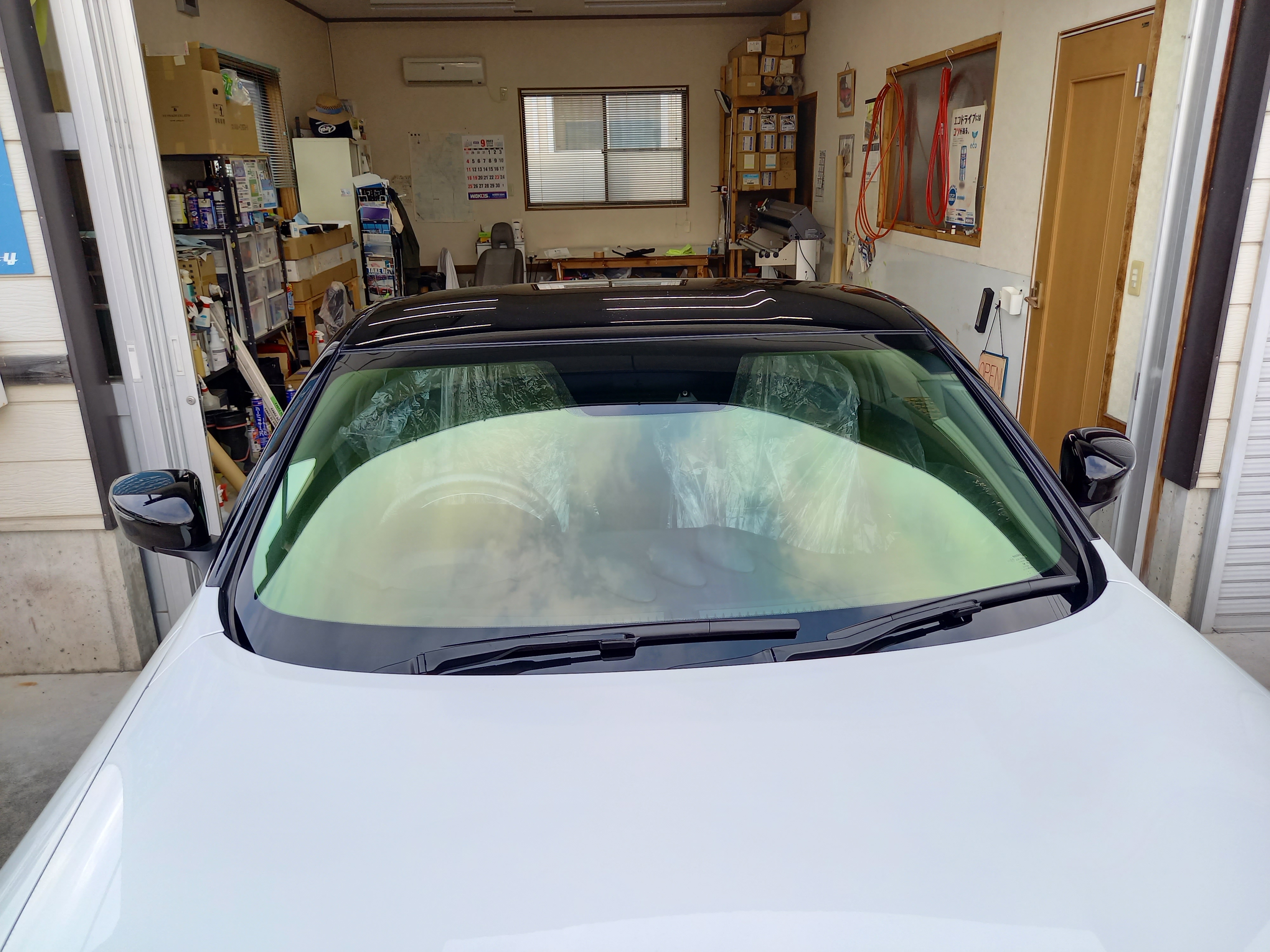 空調と照明設備の整った専用ルーム内でフィルムを貼りますので、フィルムに埃など異物の混入を最小限に抑えます。カーフィルムの施工は環境もとても大事です。専門店の施工ルームに入れて、愛車のカーフィルム施工を行います。